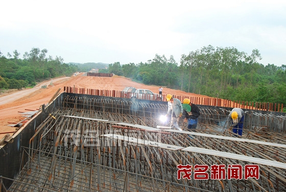 昨日上午,記者來到陽西新圩與電白望夫相接的施工現(xiàn)場,工人們有的在鋪大橋鋼筋,有的在焊接縫隙,有的在整理路基,施工現(xiàn)場熱火朝天。在望夫境內(nèi)放眼望去,路基面已基本成型。長達(dá)500多米的橫跨望夫河的特大橋,已用鋼板牢牢地筑好了施工通道,其旁邊有多臺沖樁機(jī)開動沖錘施工。工人說,將抓緊好天氣時機(jī),加快推進(jìn)施工進(jìn)度。