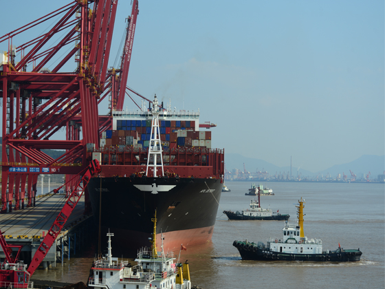 9月11日上午,寧波-舟山港金塘港區(qū)大浦口碼頭上,舟山海關(guān)關(guān)員在為外輪辦理完相關(guān)通關(guān)手續(xù)后向外輪代理工作人員了解近期航班情況。當(dāng)天,營運中東線的“美總底特律”號集裝箱輪在此進(jìn)行2916標(biāo)準(zhǔn)箱的卸載作業(yè)。這條最近掛靠的新航線為大浦口碼頭帶來了新增量。來自舟山海關(guān)的數(shù)字顯示,今年前八個月,大浦口碼頭吞吐量達(dá)到450042標(biāo)箱,同比增長2.06%,實現(xiàn)了新經(jīng)濟(jì)形勢下的穩(wěn)增長。