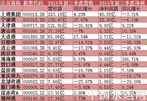 16家港口三季報一覽 16家港口三季報營收及變動幅度,凈利潤及變動幅度如下: