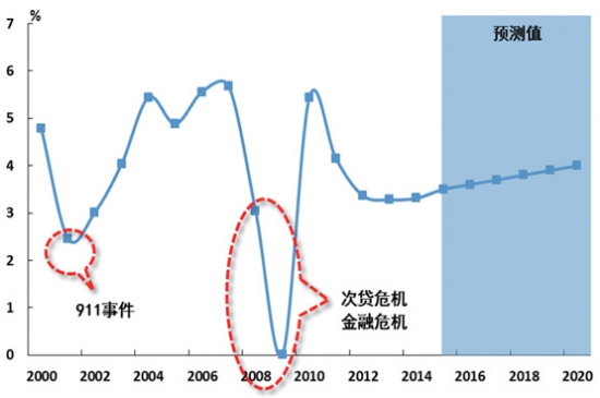 來(lái)源:中國(guó)遠(yuǎn)洋航務(wù) 預(yù)計(jì)“十三五”期間世界經(jīng)濟(jì)和貿(mào)易的增速分別為3.8%和4.7%,世界貿(mào)易相對(duì)經(jīng)濟(jì)的彈性系數(shù)由1.48降至1.25水平,海運(yùn)需求增速也將相應(yīng)減緩!白叱鋈ァ卑l(fā)展將使我國(guó)海運(yùn)需求由原來(lái)的放射結(jié)構(gòu),轉(zhuǎn)向全球網(wǎng)絡(luò)化結(jié)構(gòu);同時(shí)針對(duì)“走出去”面臨各種風(fēng)險(xiǎn),要求海運(yùn)在應(yīng)對(duì)突發(fā)事件中更好地發(fā)揮支持保障作用。 世界經(jīng)貿(mào)發(fā)展環(huán)境變化 1. 全球經(jīng)貿(mào)增速放緩,區(qū)域和國(guó)家增長(zhǎng)分化。 世界經(jīng)貿(mào)將保持低速穩(wěn)定,貿(mào)易彈性系數(shù)下降。圖1顯示了2000年以來(lái)世界經(jīng)濟(jì)增速的變化,可以看出,突發(fā)事件的影響相對(duì)短暫和局部,而經(jīng)濟(jì)發(fā)展自身問(wèn)題影響長(zhǎng)遠(yuǎn),波及范圍更加廣泛。受到9·11事件影響,2011年世界經(jīng)濟(jì)增速一度有所下滑,但很快恢復(fù),2000-2007年保持了年均4.4%的較快增長(zhǎng)。同期,世界貿(mào)易年均增長(zhǎng)6.5%,相對(duì)于經(jīng)濟(jì)增長(zhǎng)的彈性系數(shù)為1.48。美國(guó)次貸危機(jī)、金融危機(jī)和歐洲債務(wù)危機(jī)是發(fā)達(dá)國(guó)家長(zhǎng)期積累問(wèn)題的集中暴露,對(duì)世界經(jīng)貿(mào)發(fā)展造成嚴(yán)重的沖擊,2008年、2009年世界經(jīng)濟(jì)和貿(mào)易出現(xiàn)嚴(yán)重下滑,2010年雖出現(xiàn)恢復(fù)性增長(zhǎng),但受歐債危機(jī)持續(xù)、各種貿(mào)易保護(hù)措施和地緣政治等多種復(fù)雜因素影響,當(dāng)前世界經(jīng)濟(jì)和貿(mào)易的增長(zhǎng)面臨諸多不確定性,出現(xiàn)增速緩慢、穩(wěn)定的新態(tài)勢(shì)。從未來(lái)幾年發(fā)展看,根據(jù)IMF預(yù)測(cè),未來(lái)世界經(jīng)貿(mào)速度將進(jìn)入低速但相對(duì)穩(wěn)定的狀態(tài),貿(mào)易增速下降更為明顯。預(yù)計(jì)“十三五”期間世界經(jīng)濟(jì)和貿(mào)易的增速分別為3.8%和4.7%,世界貿(mào)易相對(duì)經(jīng)濟(jì)的彈性系數(shù)由1.48降至1.25水平,海運(yùn)需求增速也將相應(yīng)減緩。