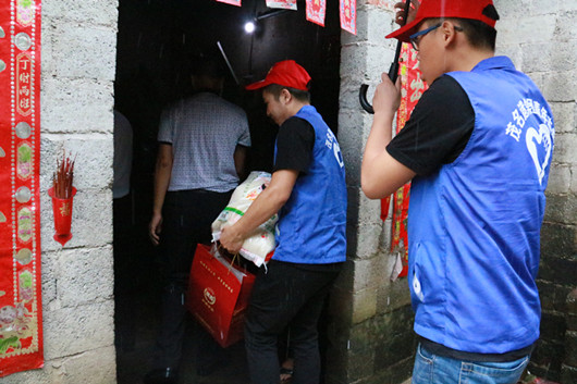 集團的志愿者們將月餅、大米、花生油等應(yīng)節(jié)慰問品送到五保戶家中