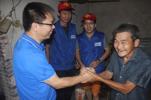 集團黨委委員、紀(jì)委副書記、工會副主席黃遠(yuǎn)維與五保戶老人親切握手交流