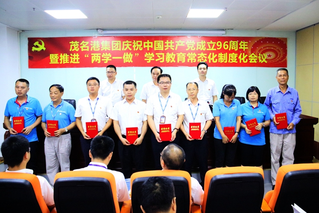 6月28日,茂名港集團召開慶祝中國共產(chǎn)黨成立96周年暨推進“兩學一做”學習教育常態(tài)化制度化會議。集團黨委書記、董事長劉乃英圍繞推進“兩學一做”學習常態(tài)化制度化工作為廣大黨員上了一堂生動而深刻的黨課,黨委副書記、紀委書記肖炳璋主持會議,副總裁楊超燦宣讀了《關(guān)于表彰2016年度優(yōu)秀黨員的決定》,黨委委員黃遠維對《關(guān)于2017年推進“兩學一做”學習常態(tài)化制度化的實施方案》作了說明。