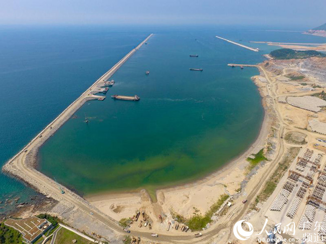 正在建設(shè)中的西防波堤工程。劉遠忠攝 其中,作為博賀新港區(qū)的重要基石和亮點工程,防波堤工程分為東、西兩段,互為掩護,共同為博賀新港區(qū)形成一個有掩護的環(huán)抱式的風(fēng)平浪靜的現(xiàn)代化深水良港,為港區(qū)內(nèi)后續(xù)臨港產(chǎn)業(yè)項目建設(shè)、發(fā)展提供優(yōu)良條件。