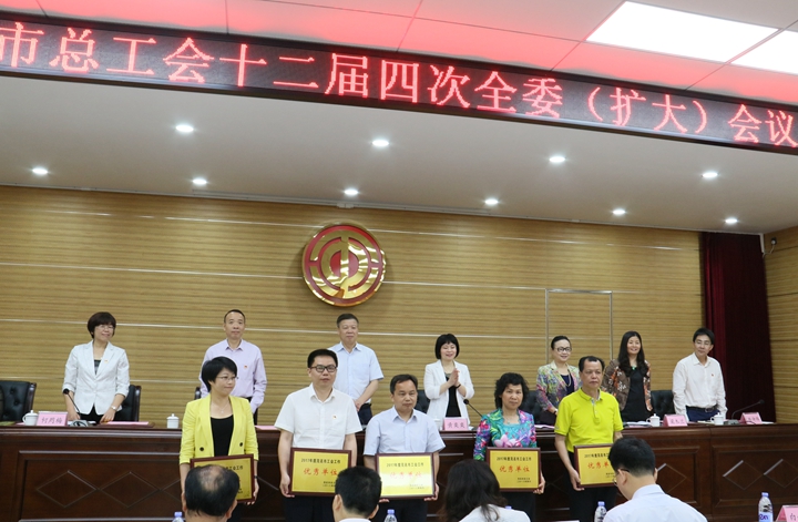 | 4月3日上午,市總工會(huì)十二屆四次全委(擴(kuò)大)會(huì)議順利召開。會(huì)議學(xué)習(xí)貫徹全國(guó)總工會(huì)十六屆七次執(zhí)委會(huì)精神和省總工會(huì)有關(guān)工作部署,聽取市總工會(huì)十二屆常委會(huì)的工作報(bào)告,通報(bào)2017年度茂名市工會(huì)工作考核情況。會(huì)上,茂名港集團(tuán)工會(huì)被評(píng)為“2017年度茂名市工會(huì)工作優(yōu)秀單位”。