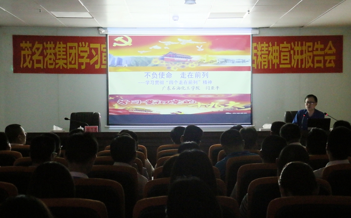 為進(jìn)一步學(xué)習(xí)宣傳貫徹習(xí)近平總書記參加廣東代表團(tuán)審議時(shí)的重要講話精神,幫助全體干部職工更好地領(lǐng)悟習(xí)近平總書記重要講話深刻內(nèi)涵,4月26日上午,茂名港集團(tuán)邀請(qǐng)市委宣講團(tuán)成員、廣東石油化工學(xué)院教授閆亞平作習(xí)近平總書記重要講話精神專題宣講報(bào)告。集團(tuán)黨委書記、董事長劉乃英主持會(huì)議。集團(tuán)總裁羅大方、黨委副書記肖炳璋、副總裁楊超燦以及機(jī)關(guān)全體人員、各下屬公司經(jīng)營班子和黨員職工代表100多人聆聽了報(bào)告會(huì)。