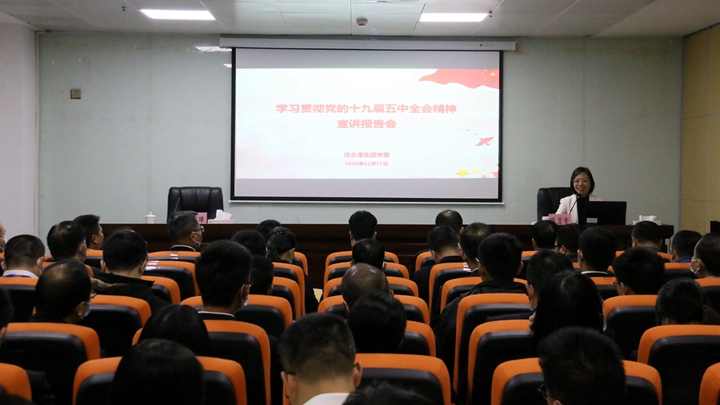 12月17日,茂名港集團舉辦學習貫徹黨的十九屆五中全會精神宣講報告會,邀請市委宣講團成員、市委黨校教育長張藍青作題為《藍圖已繪就 ,奮進新征程》的學習輔導報告。集團黨委副書記肖炳璋主持宣講會。集團黨委委員、副總裁楊超燦,集團黨委委員、紀委書記陳軍,及集團機關、各下屬企業(yè)黨員干部職工代表80多人參加報告會。