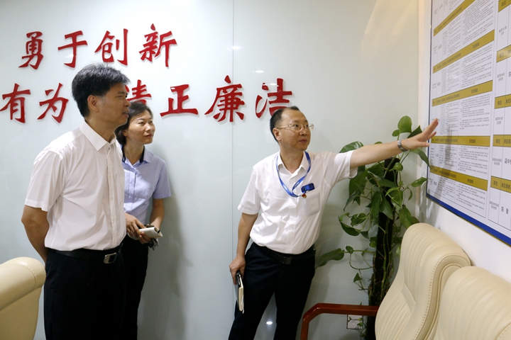 座談會上,陳軍對調(diào)研組一行表示歡迎。他表示,集團黨委高度重視黨風廉政建設(shè)工作,著力營造風清氣正創(chuàng)業(yè)工作環(huán)境。當前,集團紀委按照市紀委部署和集團黨委要求,認真貫徹落實《關(guān)于推進<茂名市管企業(yè)紀檢監(jiān)察體制改革的實施方案>的通知》文件精神,扎實開展集團紀檢監(jiān)察體制改革工作,一是健全黨風廉政建設(shè)和反腐的工作機制,結(jié)合集團紀檢監(jiān)察體制改革實際,成立黨風廉政和反腐工作協(xié)調(diào)小組;二是建立聯(lián)動監(jiān)督工作機制,加強集團重點項目關(guān)鍵環(huán)節(jié)的監(jiān)督,緊盯各項目建設(shè)關(guān)鍵環(huán)節(jié),防止“暗箱操作”,確保重點項目的高效推進;三是加強對干部的廉政監(jiān)督管理,集團紀檢監(jiān)察室通過建立中層以上干部廉政檔案,教育引導(dǎo)黨員干部自覺接受組織監(jiān)督管理;四是嚴格落實提拔任用干部征求紀委意見的要求,嚴格按照《黨政領(lǐng)導(dǎo)干部選拔任用工作條例》精神,結(jié)合集團人力資源工作實際,秉持“有為有位”選人用人的原則;五是堅持開展廉政談話教育機制,紀委堅持每個季度對各個重點項目開展廉政談話工作,抓住“關(guān)鍵少數(shù)”,與招投標等特殊敏感崗位人員進行廉政談話并簽訂《廉政從業(yè)責任書》;六是建立紀檢監(jiān)察工作聯(lián)絡(luò)員機制,發(fā)揮上下聯(lián)動作用,形成監(jiān)督合力,確保監(jiān)督責任落實到位。