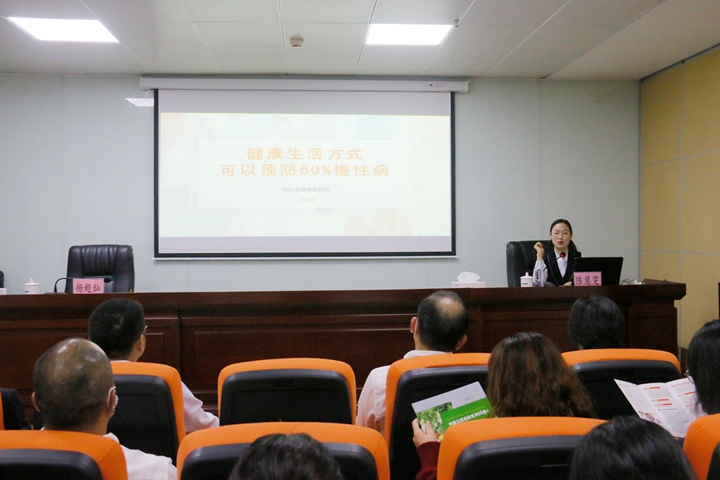 為踐行習近平總書記關于健康中國的重要論述,根據(jù)市衛(wèi)生健康局通知精神,結合集團職工健康文化月活動安排,12月16日,集團工會邀請茂名市健康教育所副所長陳慧雯到集團開展“好心茂名,健康大課堂”健康科普講座。集團黨委委員、副總裁、工會主席楊超燦,集團機關各部室、下屬企業(yè)共60余名干部職工參加了講座。