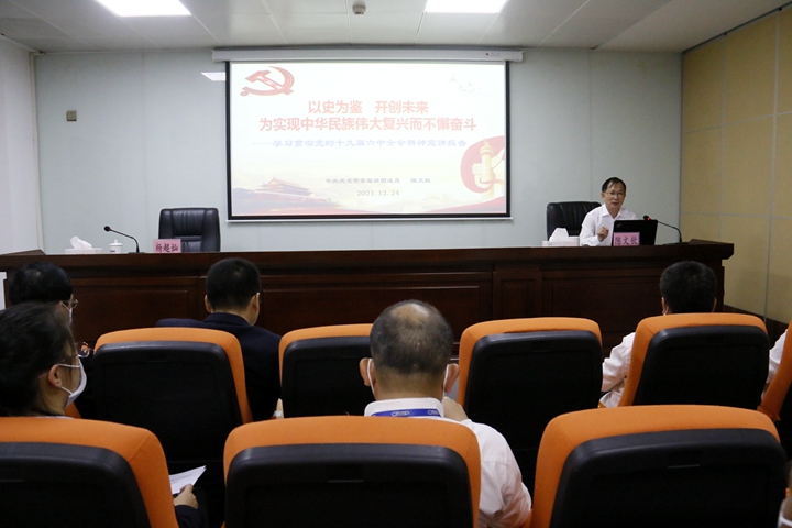 為深入學(xué)習(xí)貫徹黨的十九屆六中全會精神, 引導(dǎo)廣大黨員干部把思想和行動(dòng)統(tǒng)一到全會精神上來,持續(xù)推動(dòng)黨史學(xué)習(xí)教育走深走實(shí),12月24日,集團(tuán)舉辦學(xué)習(xí)貫徹黨的十九屆六中全會精神宣講報(bào)告會。茂名市委黨史學(xué)習(xí)教育宣講團(tuán)成員陳文欽應(yīng)邀作專題報(bào)告。集團(tuán)黨委委員、副總裁楊超燦主持會議。集團(tuán)黨委班子成員和集團(tuán)機(jī)關(guān)、各下屬企業(yè)黨員干部職工代表60余人參加報(bào)告會。