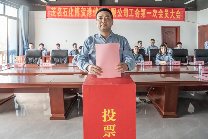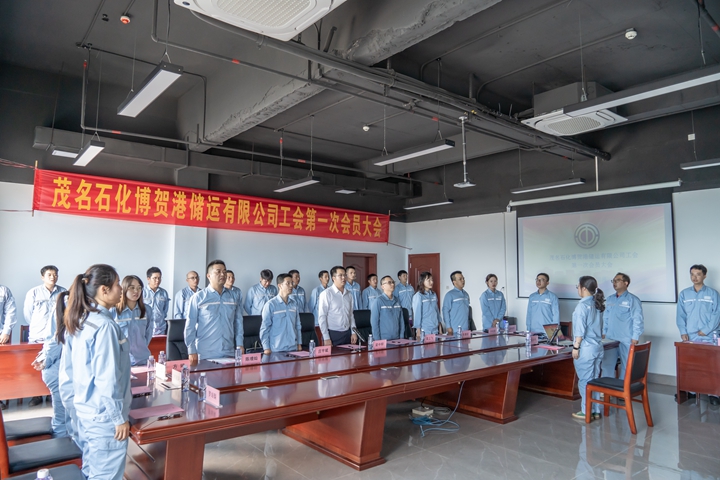 12月15日下午,茂名港集團與中國石化合資的茂名石化博賀港儲運有限公司召開工會第一次會員大會,公司總經(jīng)理梁中柳、副總經(jīng)理梁上飛、財務總監(jiān)莊宇斌和全體職工參加了會議。會議選舉產(chǎn)生第一屆工會委員和經(jīng)費審查委員會委員,陳增燦當選公司工會主席,岑俊慧當選副主席,方婷當選經(jīng)費審查委員會主任。