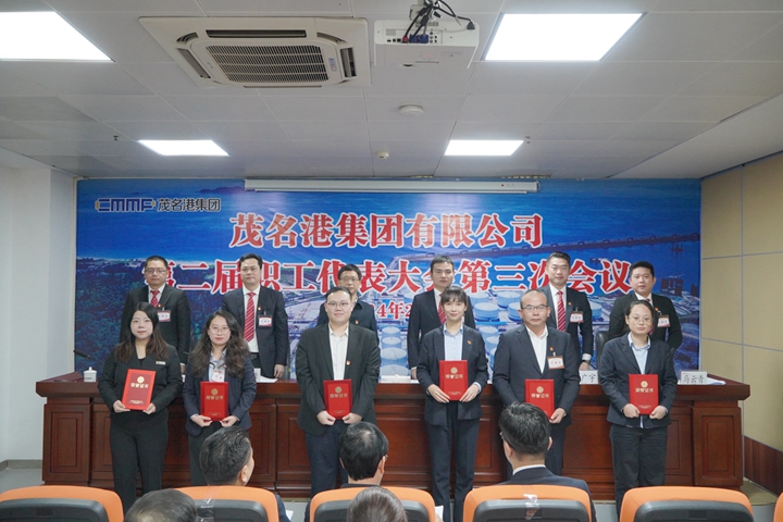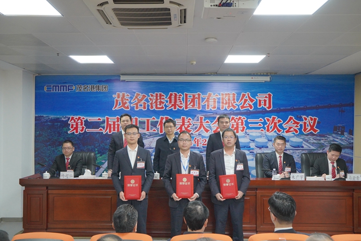 2月29日,茂名港集團(tuán)在五樓會議室隆重召開第二屆職工代表大會第三次會議。市國資委黨委書記、主任梁劍輝到會指導(dǎo),集團(tuán)黨委書記、董事長王志華出席并講話,集團(tuán)黨委副書記、總裁肖炳璋作工作報告,集團(tuán)工會主席馬云青主持會議。集團(tuán)黨委副書記、常務(wù)副總裁朱廣宇,黨委委員、副總裁楊超燦,黨委委員、總工程師蔡光章,集團(tuán)黨委委員、副總裁周成,副總裁李昱祺及集團(tuán)職工代表89人出席了大會。