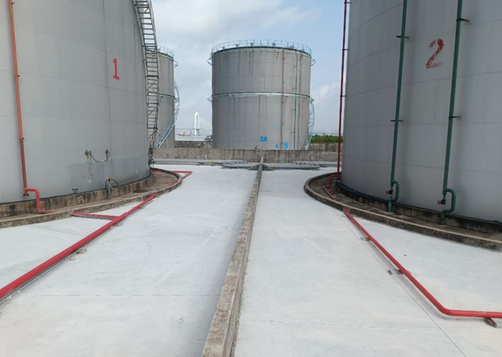 1#、2#、3#油罐區(qū)的硬底化工程也是本次優(yōu)化建設(shè)的重要一環(huán)。通過對油罐區(qū)地面進(jìn)行硬化處理,增強(qiáng)了地面的承載能力和抗?jié)B性能,同時(shí)各油罐間防火堤的完工,為庫區(qū)提供了安全可靠的防火保障。