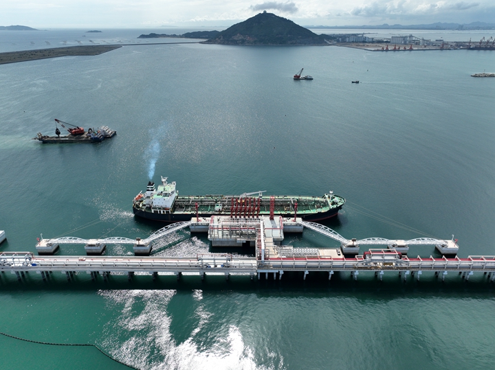 5月29日,利比里亞籍油輪"瓦萊里"號(hào)(長(zhǎng)183米,寬32米)成功靠泊茂名石化博賀港儲(chǔ)運(yùn)公司(以下簡(jiǎn)稱“石化儲(chǔ)運(yùn)公司”)10萬(wàn)噸級(jí)成品油碼頭E2泊位,標(biāo)志著該碼頭正式投產(chǎn)運(yùn)營(yíng)。此次靠泊的"瓦萊里"號(hào)載運(yùn)3.7萬(wàn)噸進(jìn)口石腦油,是碼頭建成后迎來的首艘油輪。