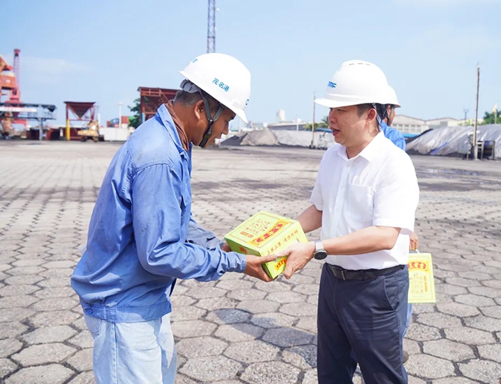 近日,茂名港集團(tuán)工會(huì)主席馬云青率隊(duì)開展“送清涼”慰問活動(dòng)。慰問組先后走訪了集團(tuán)港區(qū)生活區(qū)、中油王港公司庫區(qū)、港口經(jīng)營公司碼頭作業(yè)現(xiàn)場(chǎng)、中機(jī)科技公司生產(chǎn)現(xiàn)場(chǎng)等地,為高溫下堅(jiān)守崗位的一線操作職工、重點(diǎn)項(xiàng)目職工等送去清涼與關(guān)懷。集團(tuán)副總裁李昱祺及相關(guān)下屬企業(yè)負(fù)責(zé)人參加活動(dòng)。
